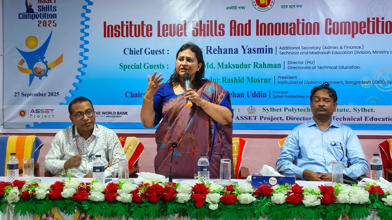 শনিবার সন্ধায় সিলেট পলিটেকনিক ইনষ্টিটিউটের কনফারেন্স হলে প্রতিষ্ঠানের অধ্যক্ষ মোহাম্মদ রিহান উদ্দিনের সভাপতিত্বে, দিনব্যাপী এই প্রতিযোগিতায় সনদ বিতরণ অনুষ্ঠানে প্রধান অতিথির বক্তব্য রাখেন শিক্ষা মন্ত্রনালয়ের কারিগরি ও মাদ্রাসা শিক্ষা বিভাগের অতিরিক্ত সচিব রেহানা ইয়াসমিন ।